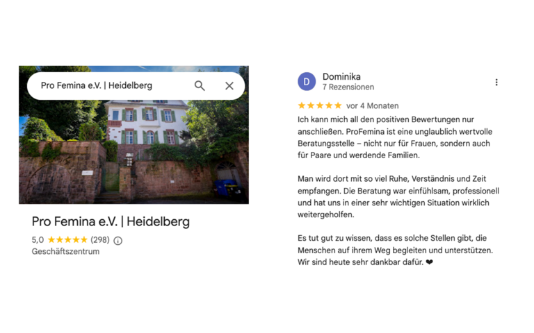 Bei den beratenen Frauen kommt die Arbeit gut an. Die Google-Bewertung der Beratungsstelle weist fünf von fünf Sternen aus. In den Rezensionen werden die Beraterinnen mit Lob überhäuft.